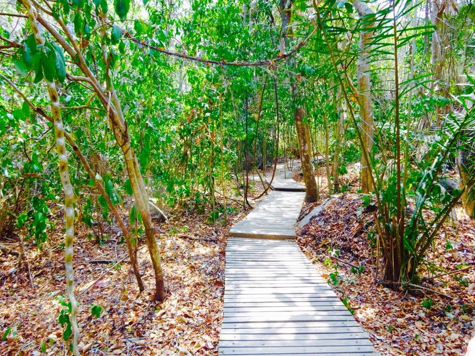 tayrona hikeTayrona is one of the most beautiful National Parks I have ever seen spanning 15,000 hectares in the North East of Colombia. We had heard about it from friends and decided to stay there for a few nights and  camp at Cabo San Juan. The entrance fee to the park for foreigners is 39,000 pesos each. We got the bus from santa Marta to the El Zaino entrance which took about 45 minutes and cost 8,000 pesos) The start is a little bit confusing. We were told that you can’t get there by car – you have to walk. This is true. However we thought this was from the entrance. It is not. We walked for an hour to the “start” before realising. Ah well – more excersize is good! The walk then got interesting. Stunning boardwalk platforms have been built to carry visitors through a variety of beautiful terrains. Rocks, forest, palm trees, and dried up river beds. It was also insanely hot. I can assuringly admit that I have never sweated so much in my life than I did in these 3 hours but the swim at the end is AMAZING!