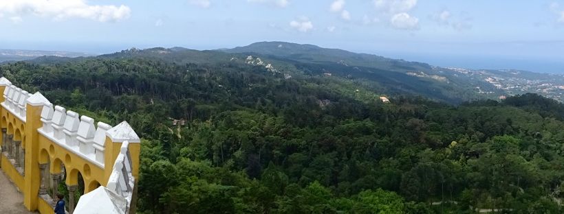 The next day went to see the Palacais De Pena brightly painted in eye catching yellows, reds and purples. It’s 12 euros for entry and in my opinion – totally worth it! It was built in the 19th century and is now a UNESCO world heritage site. You can get a bus up or choose to walk. Everyone had told us that it was too far, but we wanted the challenge and walked against advice. It was fine! In fact, it was beautiful. The walk up takes you through various different terrains like forest, wooden bridges, a river and road. I will admit we were tired when we reached the top but loved it nonetheless. It looked like something out a fairytale. We wandered through the various parts of the castle and climbed to the outer walls for a spectacular outlook over the mountain region! They have a coffee shop on one of the levels so we sat outside and soaked in the view. Apparently on a clear day, you can see the enchanting castle from Lisbon!