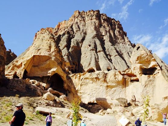 Next stop on the tour was Ihlara Valley – a beautiful, lush green 16km canyon formed thousands of years ago from volcanic eruptions. But what makes this valley even more special is the hundreds of small churches built into its walls by ancient Greeks. We carefully went down the staircase into the valley and explored one of the oldest churches with beautiful roof paintings and a hidden entrance.