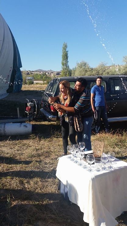 The landscape is like nothing else I have ever seen. The odd rock formations were formed approximately 10 million years ago from layers of lava from ancient volcanoes and thousands of years of eroding rains and winds. Thousands of years later, the city was then built underneath to house refugees fleeing from the Muslim Arabs during ancient wartimes. It was amazing to see the beautiful valleys and canyons and our pilot even let my friend drive it for awhile! We were only up in the air for an hour but it was enough time to go up and down through the landscape. When we landed, there was a champagne breakfast waiting for us and we all celebrated! Such an incredible morning and one I’ll never forget.